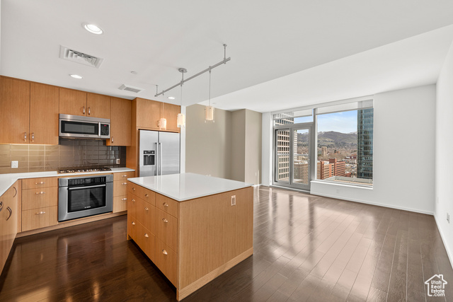 Downtown-City Creek-Regent! This immaculate, rare, east-facing high floor, 1 bedroom plus den condominium offers a blend of sophisticated living and awe-inspiring panoramic views of the bustling cityscape and majestic Wasatch Front mountains. Located in the heart of the city, this residence promises a lifestyle of luxury and convenience. Features include: Primary suite with walk-in custom designed closet, versatile den space, open concept living space with kitchen island, floor-to-ceiling windows, spa like bathroom with soaking tub/separate shower and a full laundry room. Everything your heart desires in the city is at your doorstep including: the spectacular City Creek retail center, the Eccles performing arts theatre, the arena, the ballet, the symphony, light rail to SLC International airport and restaurants galore! Don’t miss this opportunity to live and play in the heart of Salt Lake City at The Regent at City Creek Center! Square footage is provided only as a courtesy and was obtained from the building’s architect. Buyer is advised to obtain their own estimate.