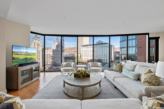 In the heart of the city and directly across from Temple Square, this luxury home offers exceptional living with unbeatable views of the Salt Lake City’s historic Temple grounds. Couple this with world-class shopping at City Creek Center, the city’s best dining and entertainment options (all right outside your door) and you have a home that offers it all. 701Richards Court East features a large living area for entertaining, 2 bedrooms, each with en-suite bathrooms plus a 1/2 bath-powder room. Excellent parking and a second parking space is available for purchase from the seller. Private and flexible-timing tours are available. Square footage figures are provided as a courtesy estimate only and were obtained from building architect. Buyer is advised to obtain an independent measurement.